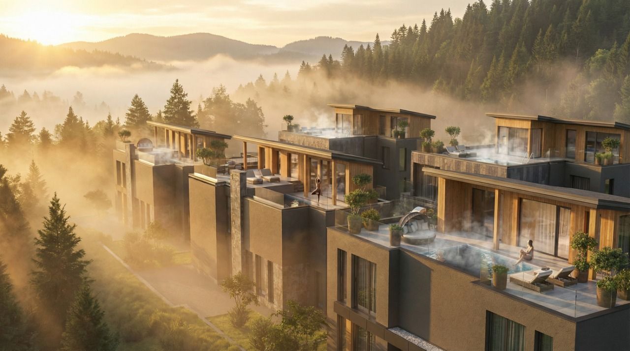 Готовые резиденции с термальными террасами, видом на «Черную пирамиду» и полным 5* отельным сервисом.